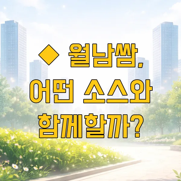 월남쌈은 다양한 소스와의 조합이 매력적인 음식이죠. 가장 대중적인 것은 역시 스위트 칠리소스예요. 매콤달콤한 맛이 채소와 고기의 맛을 한껏 살려준답니다. 땅콩 소스는 고소하면서도 깊은 풍미를 더해주어 또 다른 즐거움을 선사해요. 혹시 조금 색다른 맛을 원하신다면, 피쉬 소스(액젓)를 베이스로 마늘, 라임, 설탕 등을 섞어 만든 베트남식 소스를 곁들여 보시는 것도 좋겠어요.