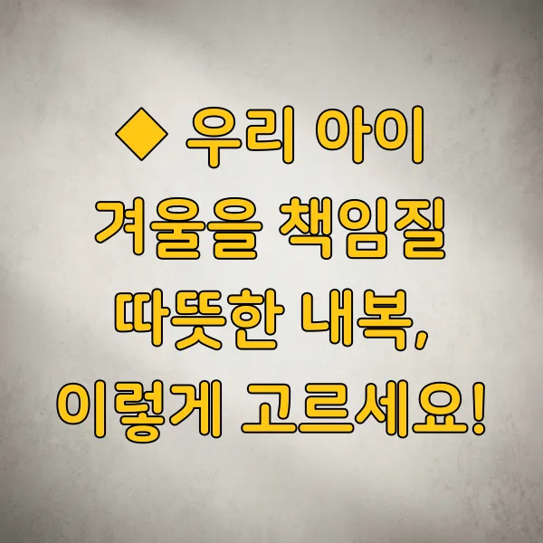 아이들은 자신에게 딱 맞는 편안한 옷을 입었을 때 가장 행복해하는 것 같아요. 작은 관심과 정성으로 고른 내복 한 벌이 우리 아이의 겨울을 더욱 따뜻하고 포근하게 만들어 줄 거라 믿어요. 다음번에 내복 살 때 오늘 이야기한 내용들 꼭 기억해주세요!